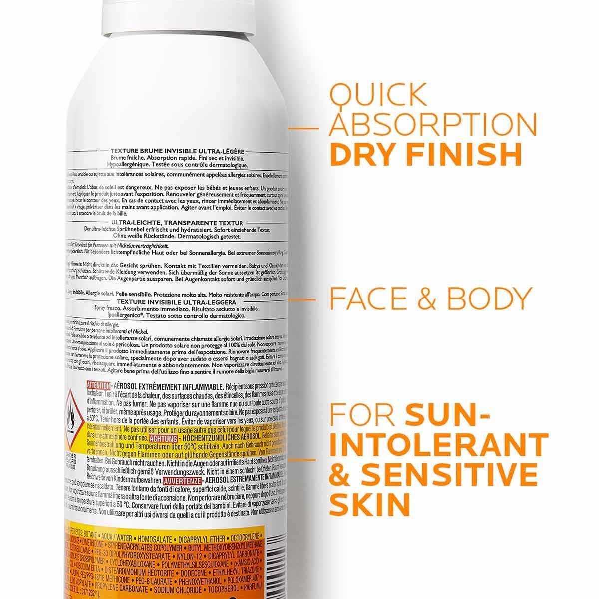PROTECTOR SOLAR CUERPO - ANTHELIOS XL BRUMA CORPORAL ULTRA-LIGERA FPS 50+ / FP-UVA 25 proporciona una mayor protección de amplio espectro (UVA, UVB) y ayuda a proteger contra los daños producidos por algunos rayos infrarrojos y por la contaminación. Resistente al agua. Invisible. Rápida absorción.