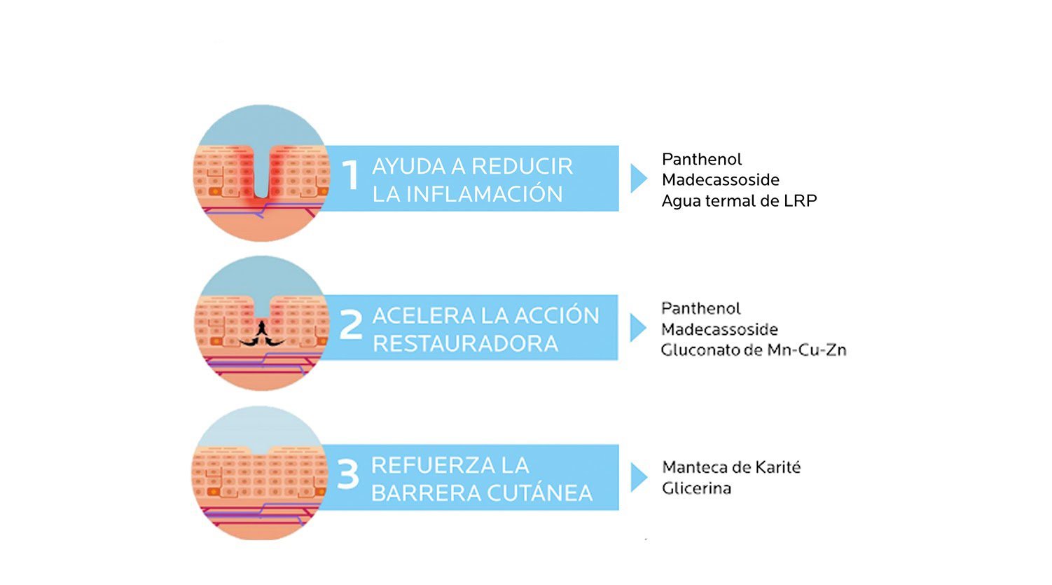 Además, reduce el dolor y acelera el proceso de curación gracias su efecto multi-reparador de la barrera cutánea.