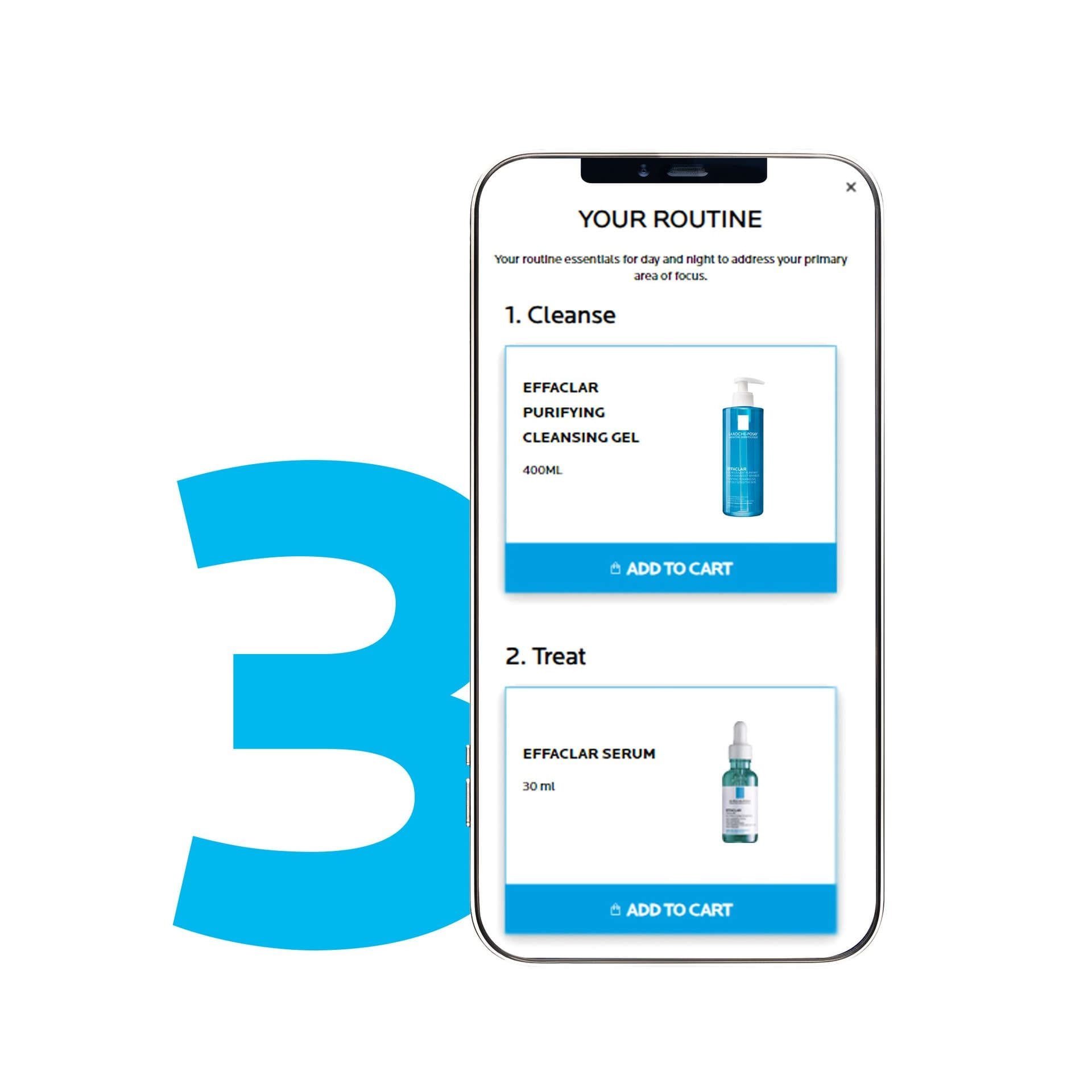 Basado en el diagnóstico, Spotscan+ te sugerirá una rutina personalizada para el cuidado de tu piel, con recomendaciones precisas: limpia, trata y protege.